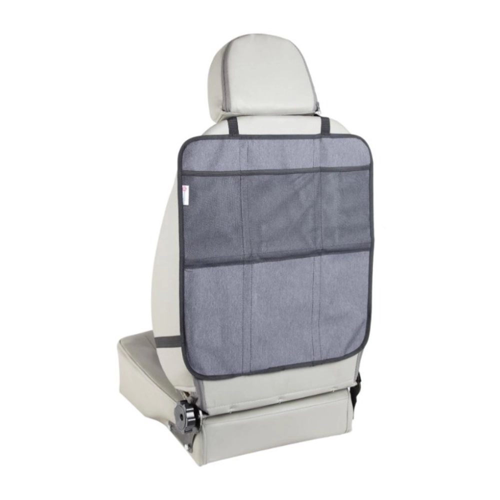 Proizvod se može podijeliti na dva zasebna dijela – donji dio prekriva sjedište i prednji rub sjedala ispod autosjedalice, dok gornji dio služi kao zaštita naslona od udaraca nogama s pretincima za pohranu. Ugradnja je brza zahvaljujući podesivim trakama i univerzalnom pričvršćivanju na naslon za glavu.
