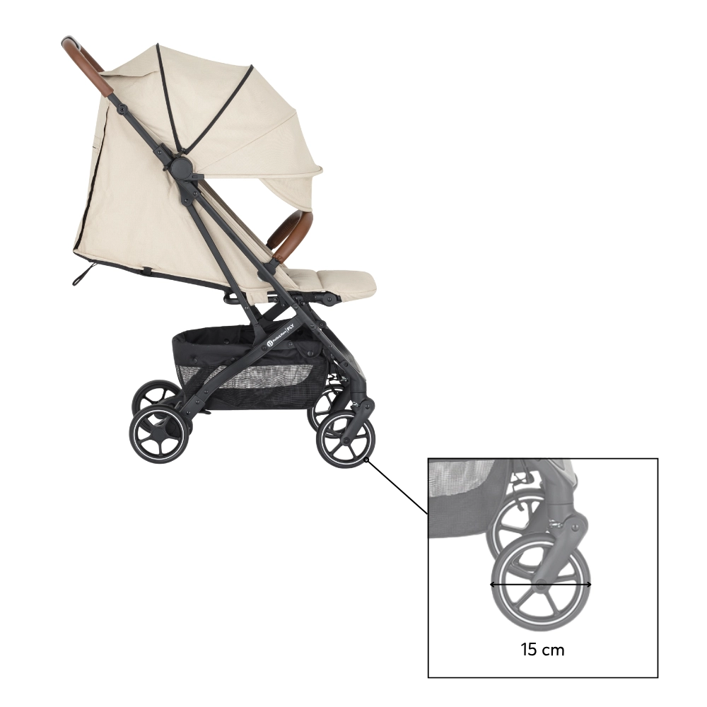 Otkrijte svijet s kolicima Petite&Mars FLY u bezvremenskoj nijansi Sahara Beige. Ova lagana i skladna sportska kolica dizajnirana su za udobnost djeteta i roditelja: od opruženih, potpuno okretnih prednjih kotača za glatku vožnju po gradu do naslona za leđa podesivog do potpuno ležećeg i podesivog oslonca za noge. Integrirani 5-točkovni pojasevi s magnetskom kopčom povećavaju sigurnost i olakšavaju zakopčavanje.