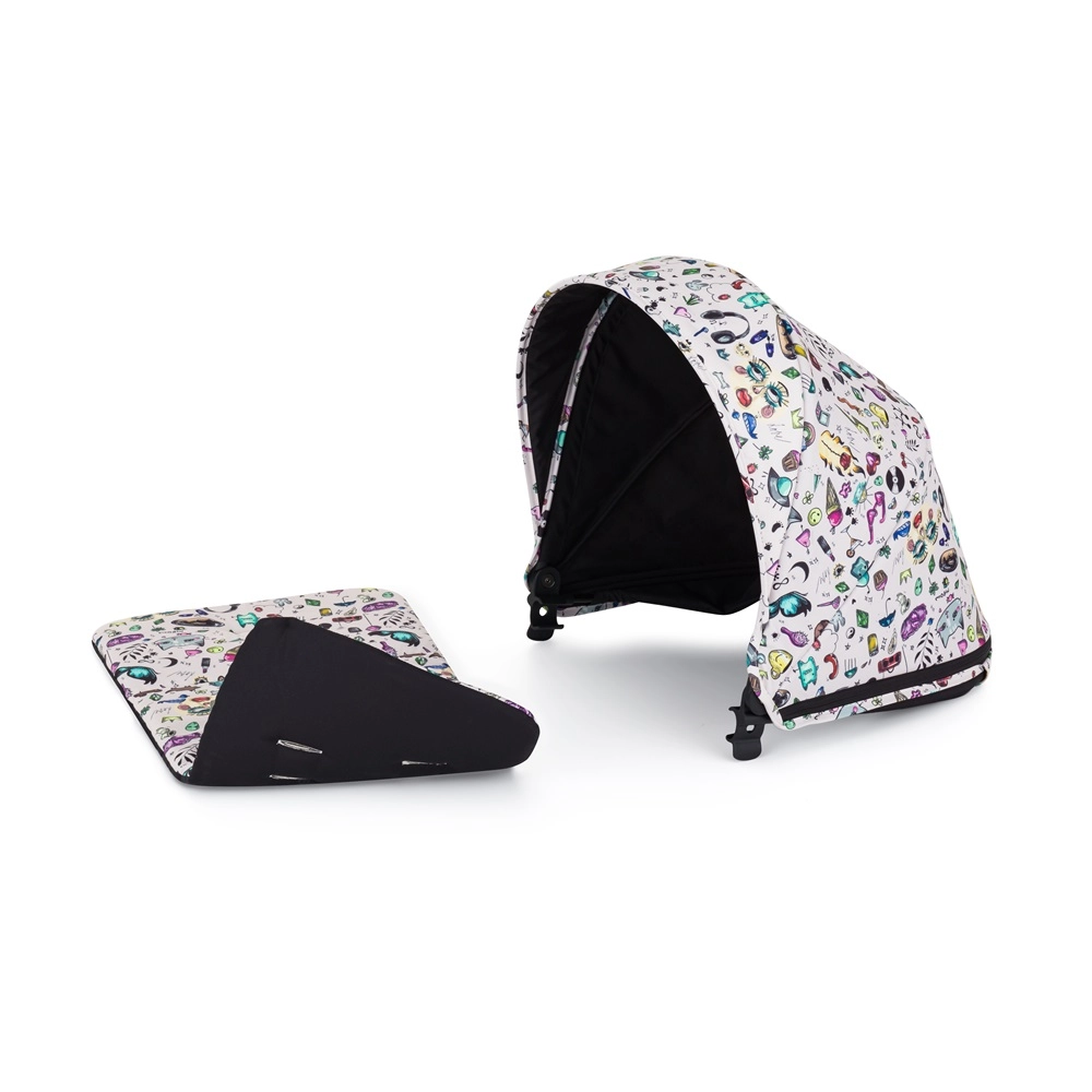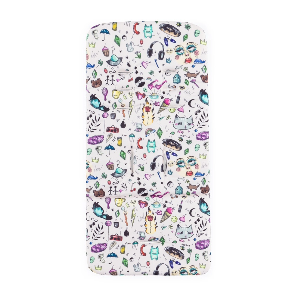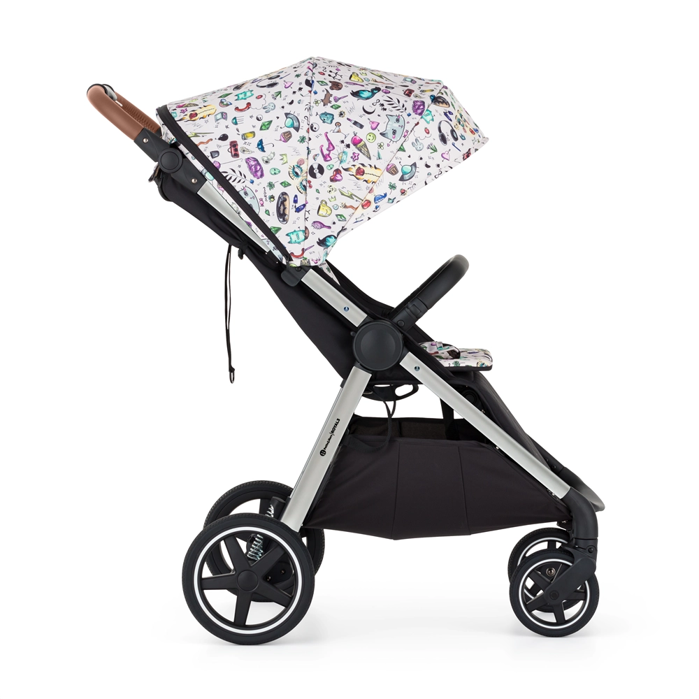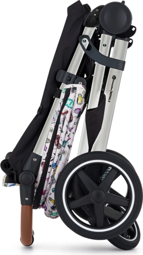 - konstrukcija, prednji i stražnji punogumeni kotači, presvlaka sjedala, torba za presvlačenje, crna navlaka za noge, sjenilo, umetak za kolica u uzorku Tattoo, 3-dijelno podstavljanje