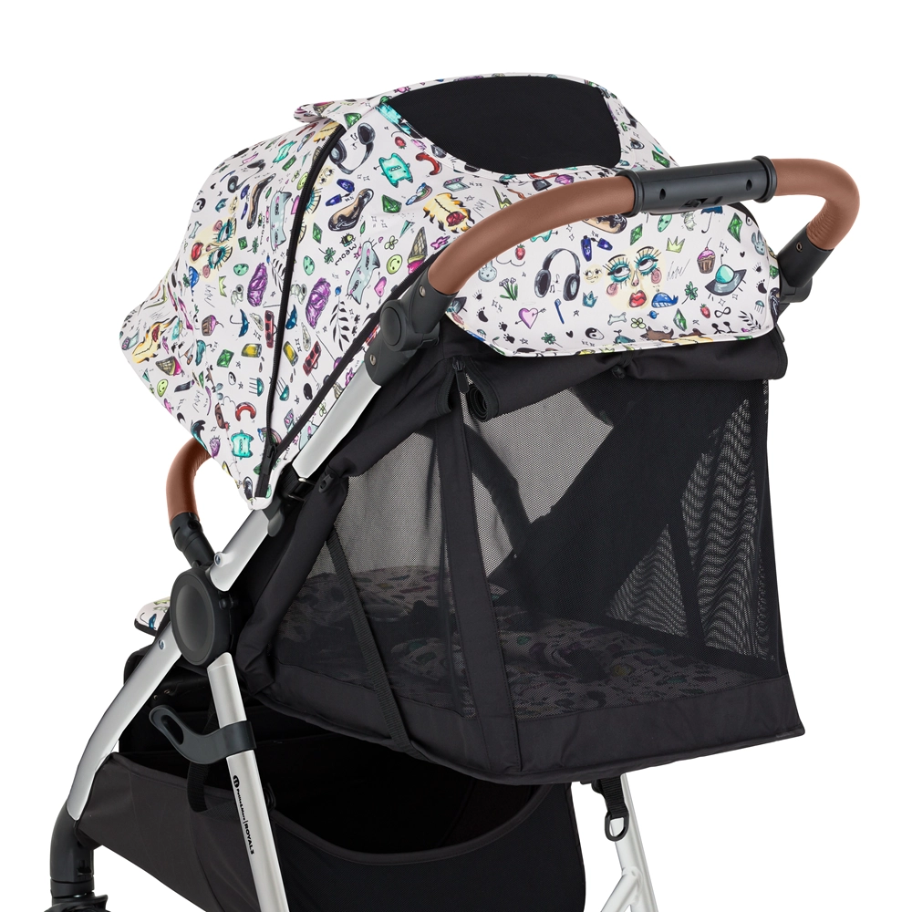 Limitirana kolekcija Limited 100 donosi svjež dizajn mladih autora u grad i prirodu. Royal 3 u verziji Silver Tattoo ističe se čvrstom aluminijskom konstrukcijom elegantnog izgleda, smeđim detaljima od eko‑kože i praktičnim punogumenim kotačima sa stilskim bijelim rubom. Zahvaljujući sustavu Panoramic Ventilation kolica se prozračuju s tri strane, pa djetetu osiguravaju ugodnu klimu i po vrućini.