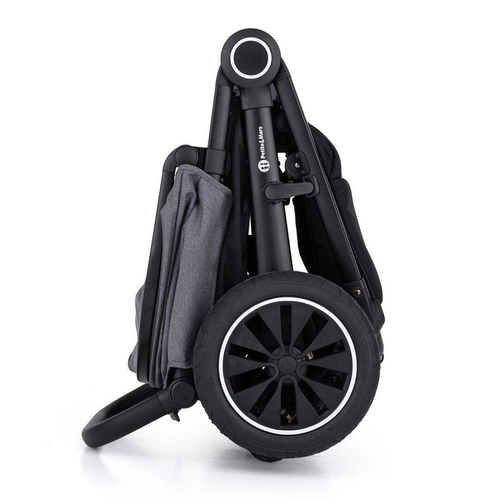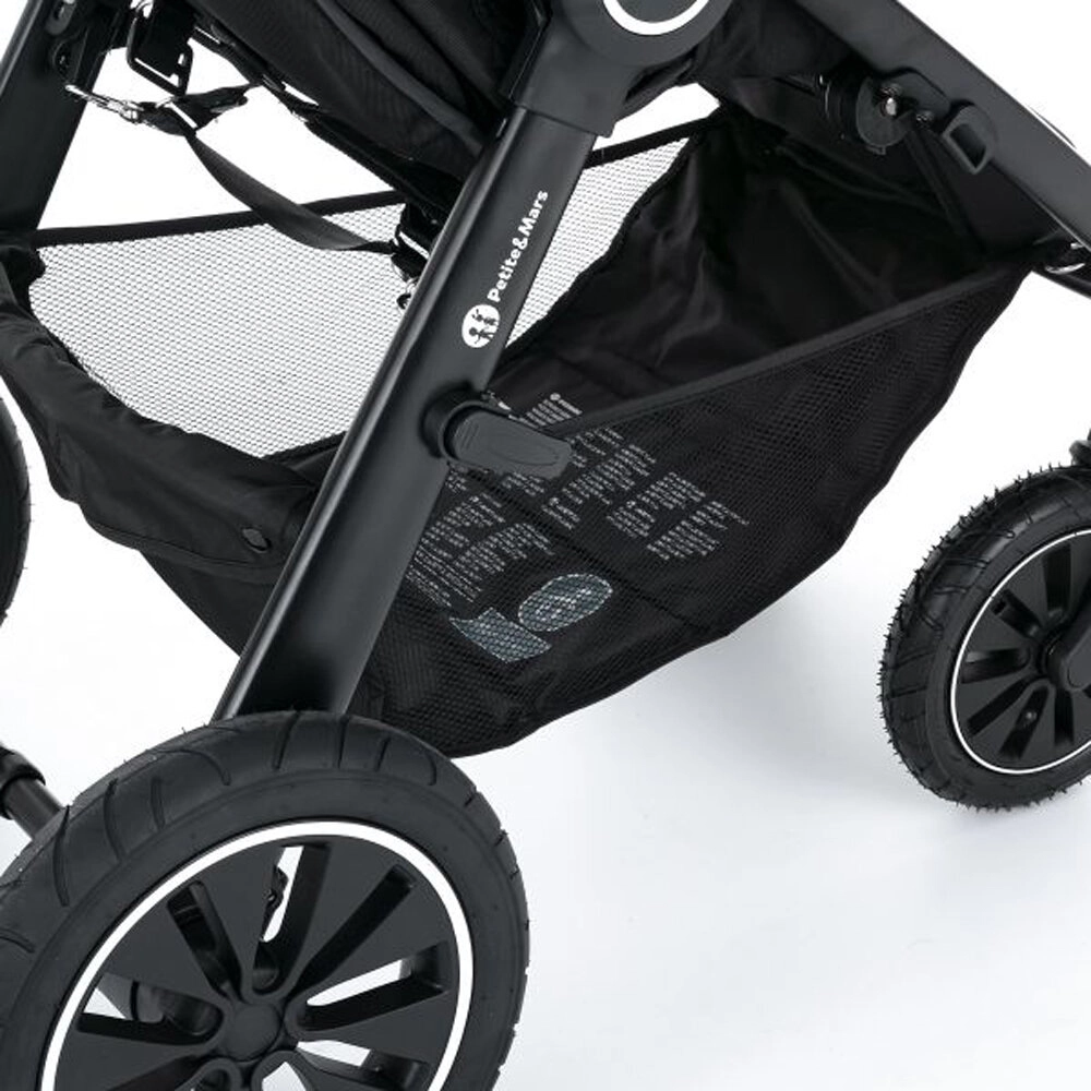 PETITE&MARS Street+ Air Black Limited promišljena su kolica za djecu od 6 mjeseci do 22 kg, dizajnirana za udobnost djeteta i roditelja. Lagana, ali čvrsta konstrukcija apsorbira udarce, a pneumatski kotači povećavaju stabilnost i prolaznost u gradu i na terenu. Ekstra velika krošnja s prozorčićem i SPF 50 štiti od sunca i vjetra, dok duga ležeća površina i veliki naslon za leđa osiguravaju udobnost na svakom putovanju.