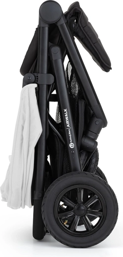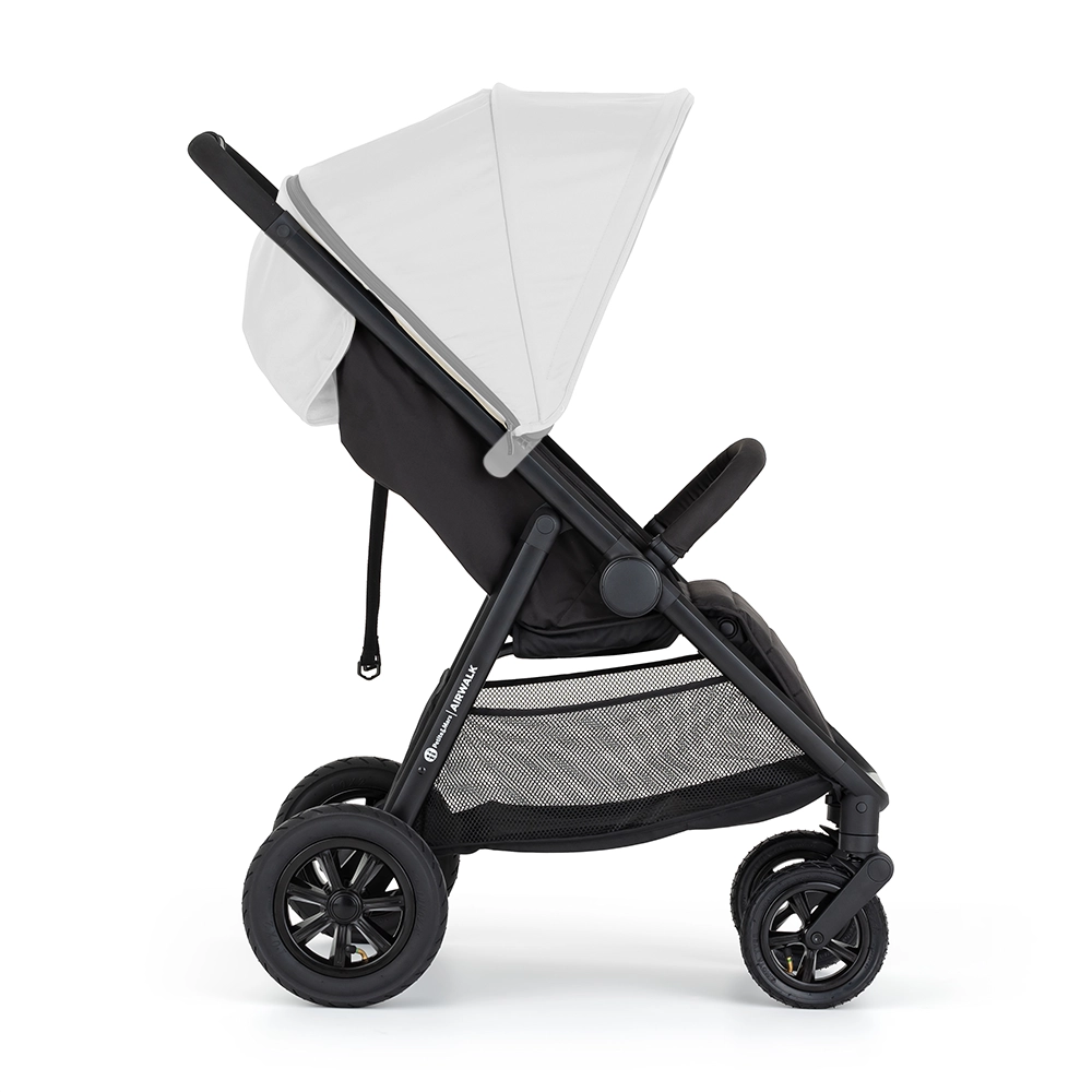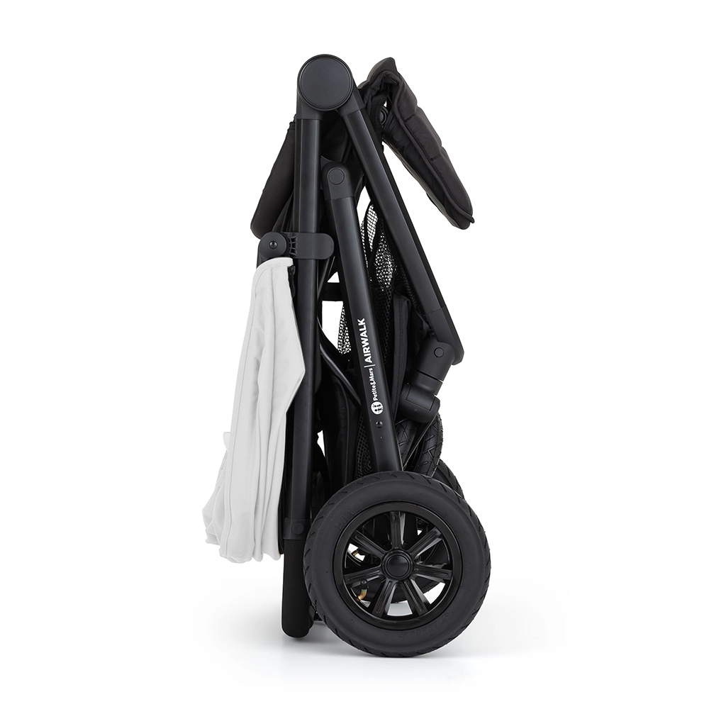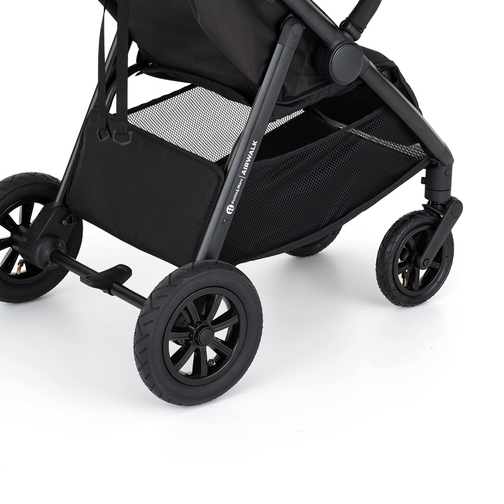 Sportska kolica PETITE&MARS Airwalk ističu se stabilnom konstrukcijom s pneumatskim kotačima koji se lako nose i s gradom i s zahtjevnijim terenom. Zahvaljujući jednostavnom sklapanju, kolica nakon sklapanja stoje sama i ne zauzimaju mnogo mjesta. Velikodušan naslon, namještanje gotovo u potpuno ležeći položaj i tri pozicije oslonca za noge osiguravaju udoban san i duže šetnje.