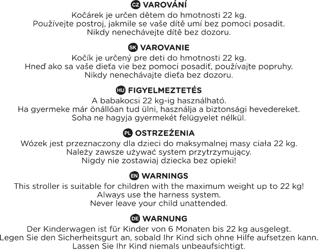 - Jednostavno rukovanje: brzo sklapanje, stoji nakon sklapanja, središnja kočnica, osigurač protiv rasklapanja.