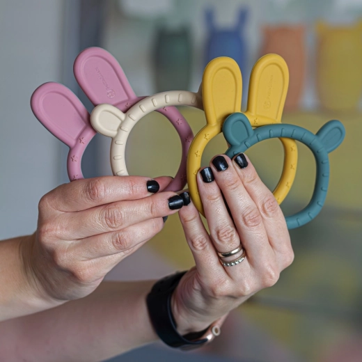 Meka silikonska grickalica u obliku medvjedića donosi bebama od rođenja trenutnu olakšicu pri nicanju zubića. Izrađena je od 100% prehrambenog silikona bez BPA, lagana je, fleksibilna i nježna prema desnima. Zahvaljujući različitim teksturama nježno masira desni, može se ohladiti u hladnjaku i lako uhvatiti malim ručicama.