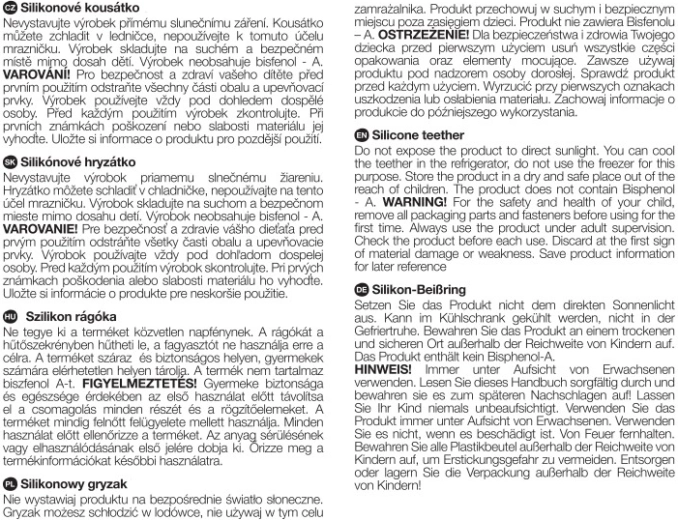 Mekani i fleksibilni silikon za prehranu masira desni i pomaže umiriti bol pri rastu zubića. Glatke površine idealne su za nanošenje rashlađujućeg gela.