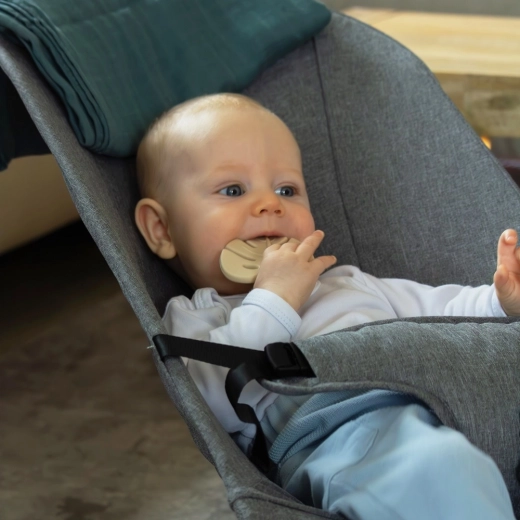 Meka silikonska grickalica u obliku lista od PETITE & MARS donosi bebama od rođenja trenutačno olakšanje pri nicanju zubića. Izrađena je od 100% silikona za prehranu bez BPA, lagana je, fleksibilna i nježna prema osjetljivim desnima. Zahvaljujući ergonomskom obliku lako se hvata, može se hladiti u hladnjaku, a njezine glatke površine idealne su za nanošenje rashlađujućeg gela. Jednostavno održavanje uključuje pranje u perilici posuđa i mogućnost usklađivanja boja u sklopu serije TAKE & MATCH.