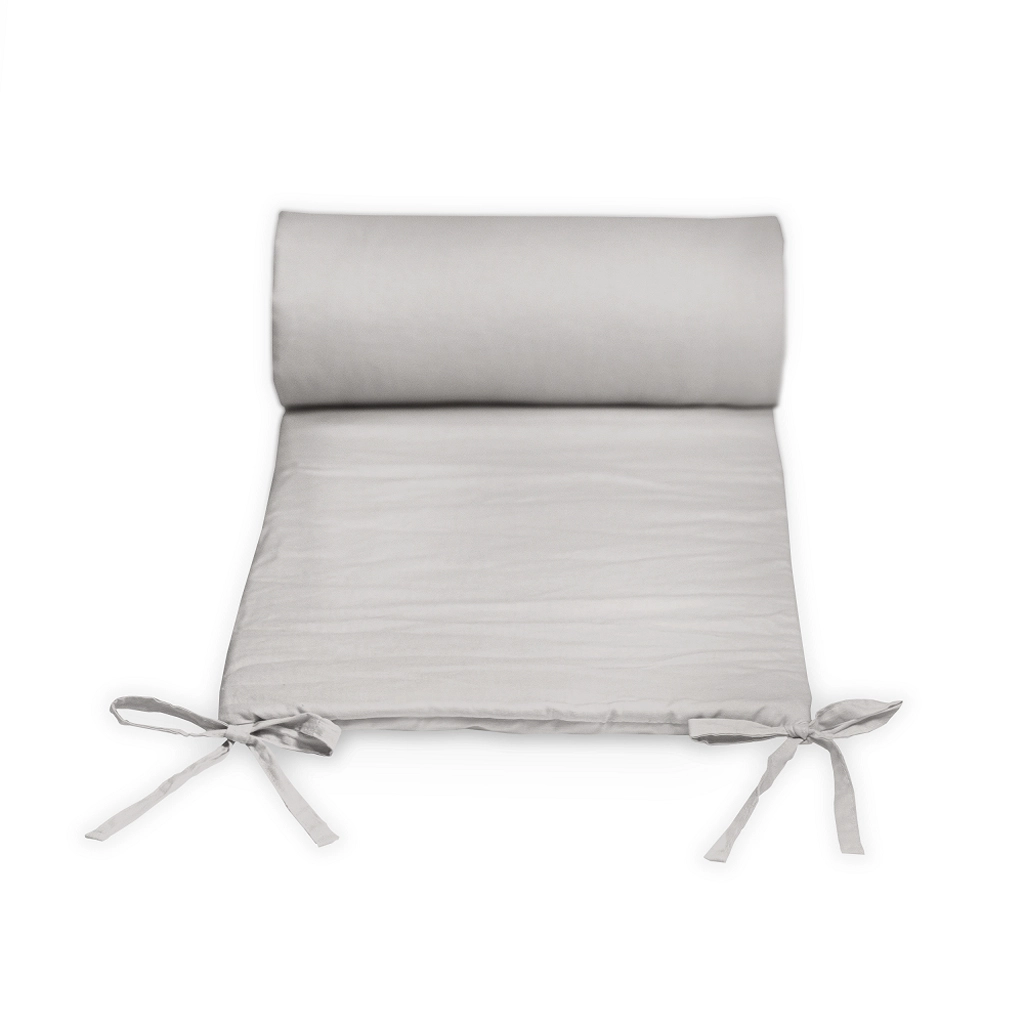 Praktična ogradica za krevetić Petite&Mars Tilly Max u boji light grey dizajnirana je kako bi vašoj bebi osigurala maksimalnu sigurnost i udobnost. Mekana ispuna štiti od udaraca u prečke, a fina pamučna tkanina je ugodna na dodir, pa će se vaše dijete osjećati mirno i zadovoljno u krevetiću. Ogradica se lako pričvršćuje pomoću traka, a zahvaljujući univerzalnim dimenzijama 360 × 36 cm obuhvaća većinu standardnih krevetića.