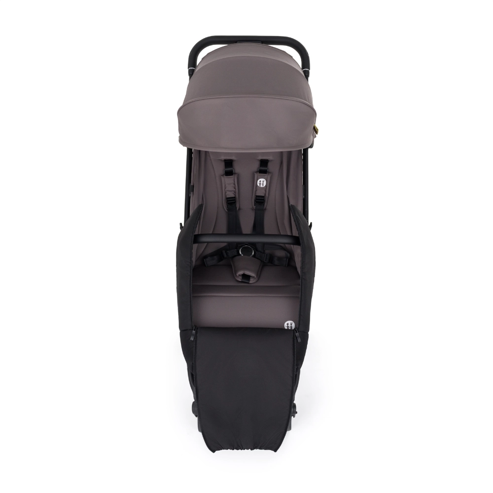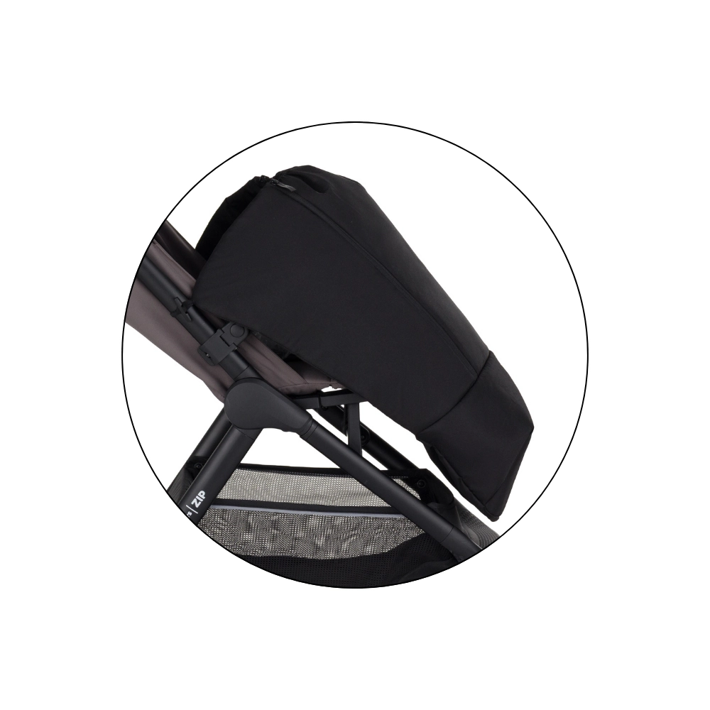 Zahvaljujući dvama bočnim patentnim zatvaračima, rukovanje je iznimno jednostavno – možete brzo prozračiti ili udobno izvaditi dijete bez potrebe da nanožnik potpuno otkopčate. Pričvršćivanje pomoću elastičnih petlji i kopčanja čvrsto drži nanožnik na konstrukciji kolica. Univerzalna dimenzija osigurava kompatibilnost s većinom kolica (npr. CYBEX, KINDERKRAFT, EASYWALKER). Nije prikladno za kolica s tkaninom čvrsto prišivenom na konstrukciju.