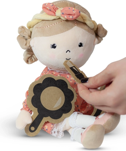Ekološko pakiranje služi i za igru: na stražnjoj strani kutije nalaze se izdvojivi dodaci (češalj, ogledalce i drugi) koji proširuju mogućnosti maštovite igre i brige o lutki. Sophie je siguran izbor za najmlađe, s izvezenim crtama lica i mekim dijelovima bez tvrdih elemenata.