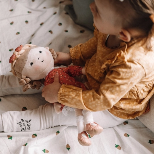 Lutka Sophie ističe se ugodnim materijalima – tijelo od mekog poliestera i haljina od 100% pamuka. Zahvaljujući maloj težini bez problema je drže i najmanje ručice te postaje vjerna pratiteljica kod kuće i na izletima. Njezin romantičan izgled s cvjetnim i čipkastim detaljima djeca će zavoljeti na prvi pogled.