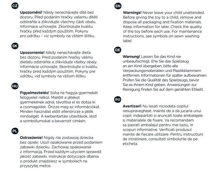 Tekstilno tijelo s finim detaljima ugodno je na dodir i sigurno čak i za novorođenčad. Idealno za umirivanje i osjećaj sigurnosti pri uspavljivanju.