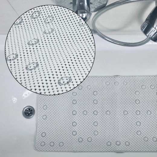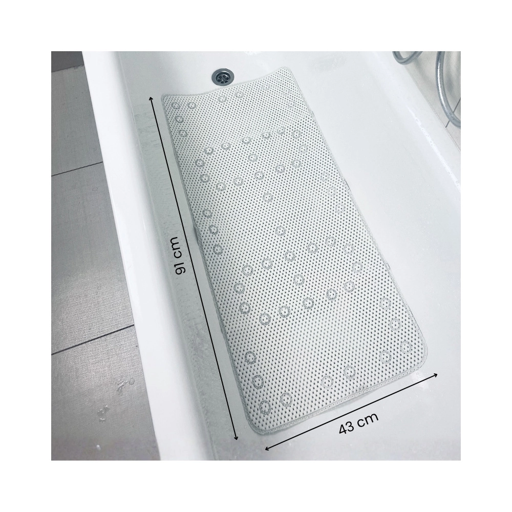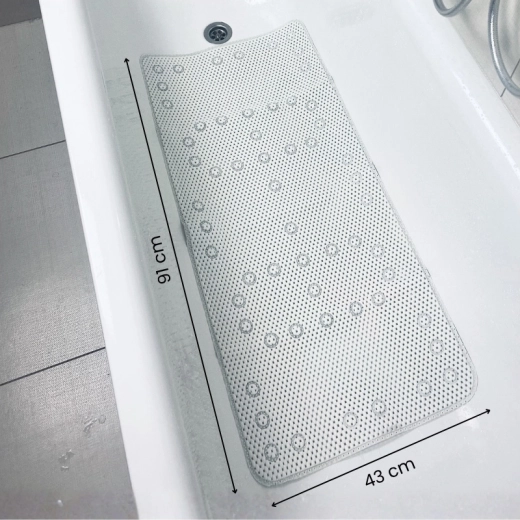Dimenzije 91 × 43 cm pokrivaju gotovo cijelo dno kade i pružaju stabilnu potporu djeci i odraslima tijekom kupanja ili tuširanja.