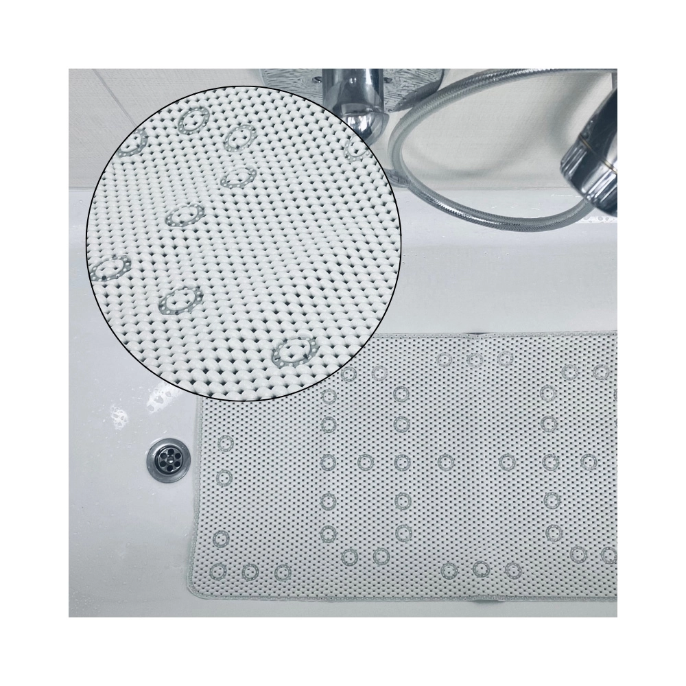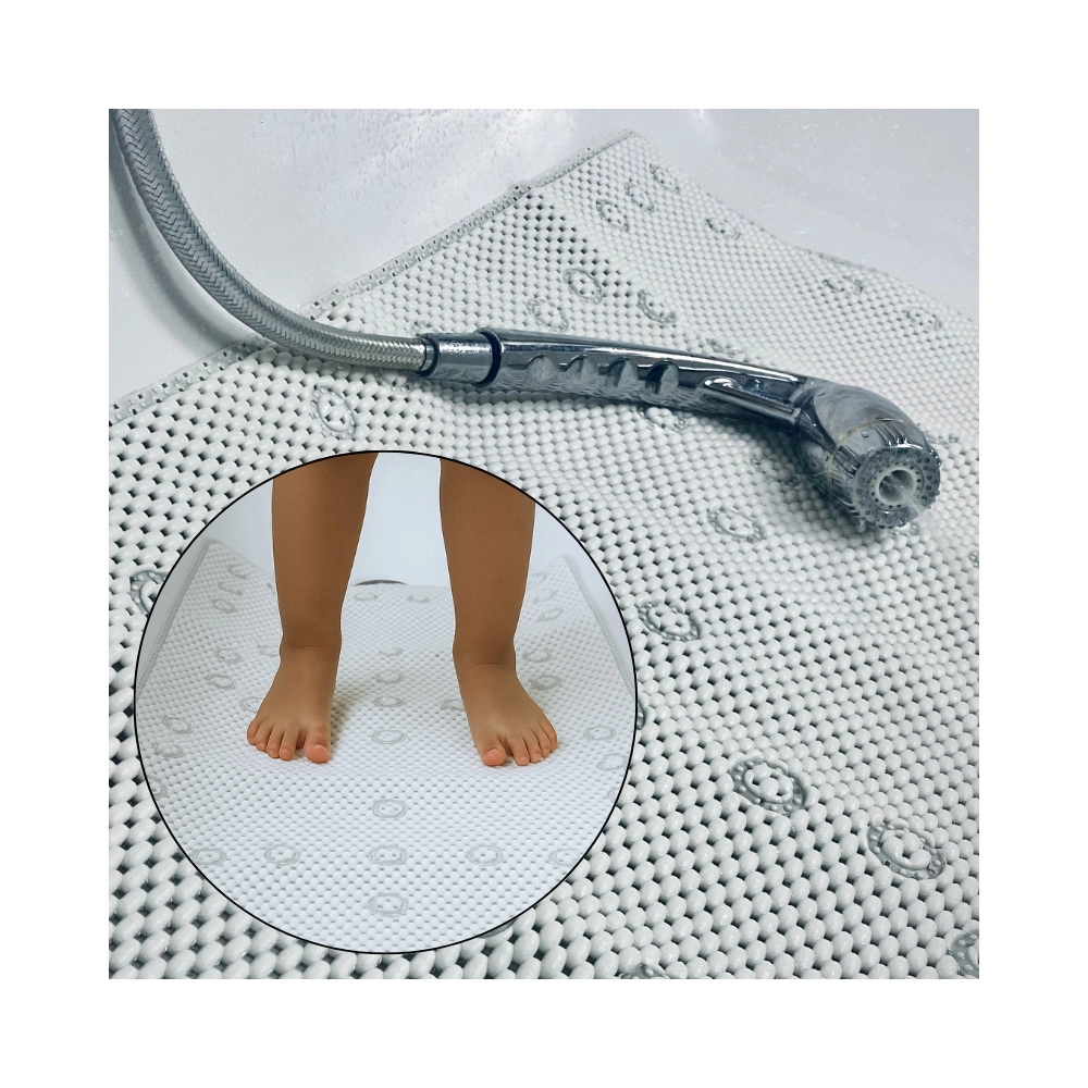 Zahvaljujući materijalu 100% PVC podloga je vrlo lagana, izdržljiva i brzo se suši. Ugradnja je jednostavna: položite je na vlažnu površinu, pritisnite sve čepove i provjerite da je savršeno poravnata. Jednostavno održavanje i univerzalan dizajn čine je praktičnim dodatkom svakom kućanstvu.