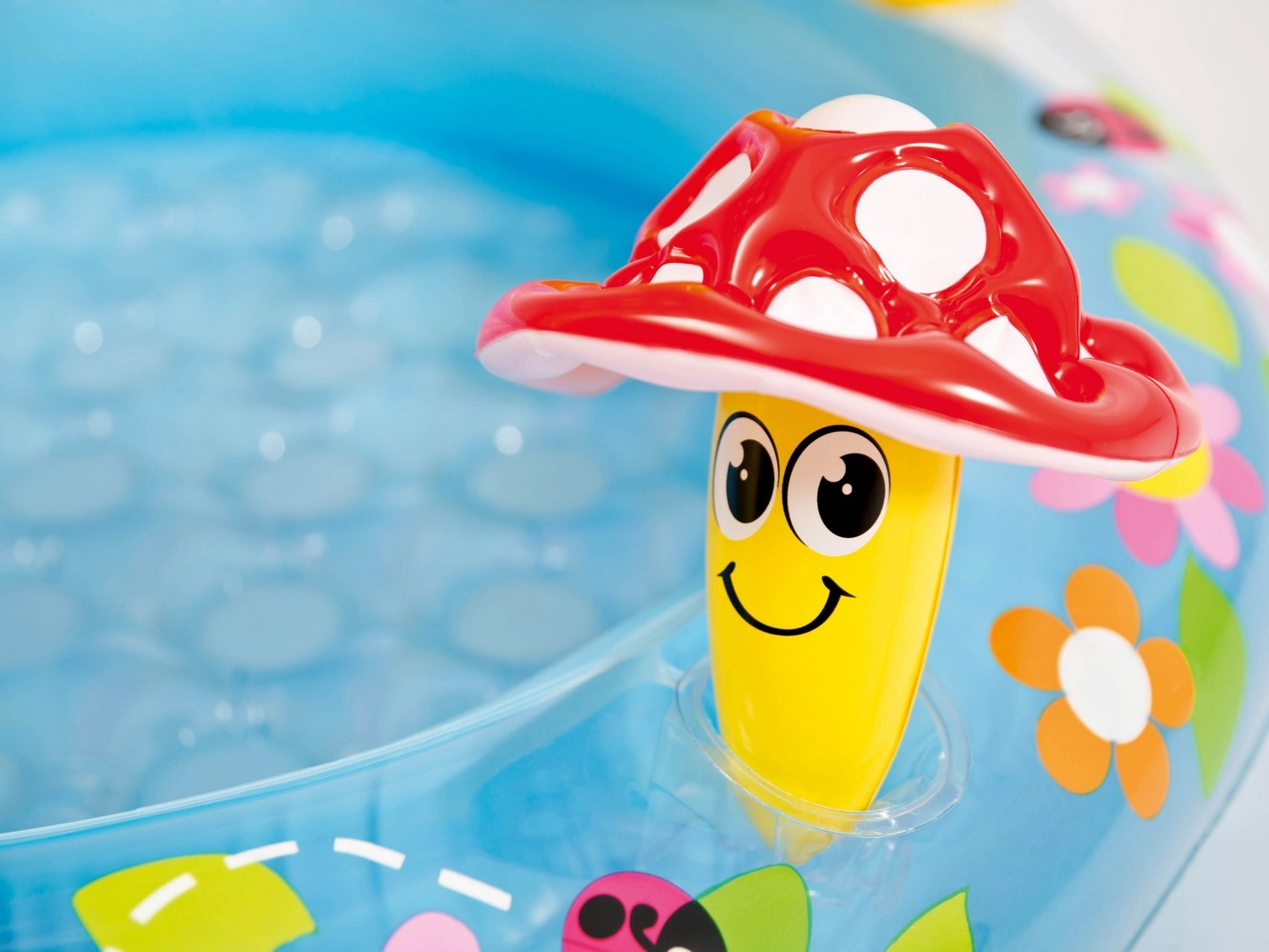 Presladak dječji bazen INTEX Mušnica nudi sigurno ljetno osvježenje za najmlađe. Integrirani suncobran u obliku mušnice štiti od sunca, mekano dno osigurava udobnost, a izdržljivi PVC podnosi i živahniju igru. U pakiranju je i mala napuhujuća igračka te zakrpa za brze popravke.