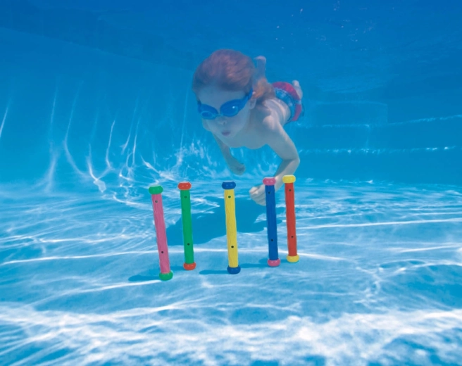 Svaki je štap opterećen, pa nakon bacanja u vodu brzo tone na dno i ostaje stajati vertikalno. Djeca tako mogu lako vježbati ronjenje, orijentaciju pod vodom i koordinaciju pokreta.