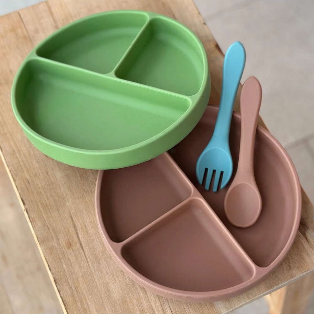 Cijeli set izrađen je od 100% silikona za prehranu bez BPA, otpornog na topla i hladna jela. Jednostavno održavanje i mogućnost pranja u perilici posuđa čine ga idealnim izborom za svakodnevnu upotrebu kod kuće i na putovanjima. Kolekcija TAKE&MATCH omogućuje usklađivanje boja pribora s zdjelicama, tanjurima i ostalom opremom.