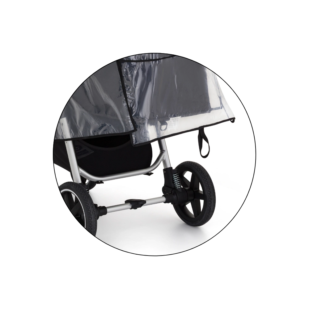 Prozirni pokrov s kvalitetnim obrubom štiti dijete i kolica, a istodobno zadržava savršen pogled i nadzor roditelja.