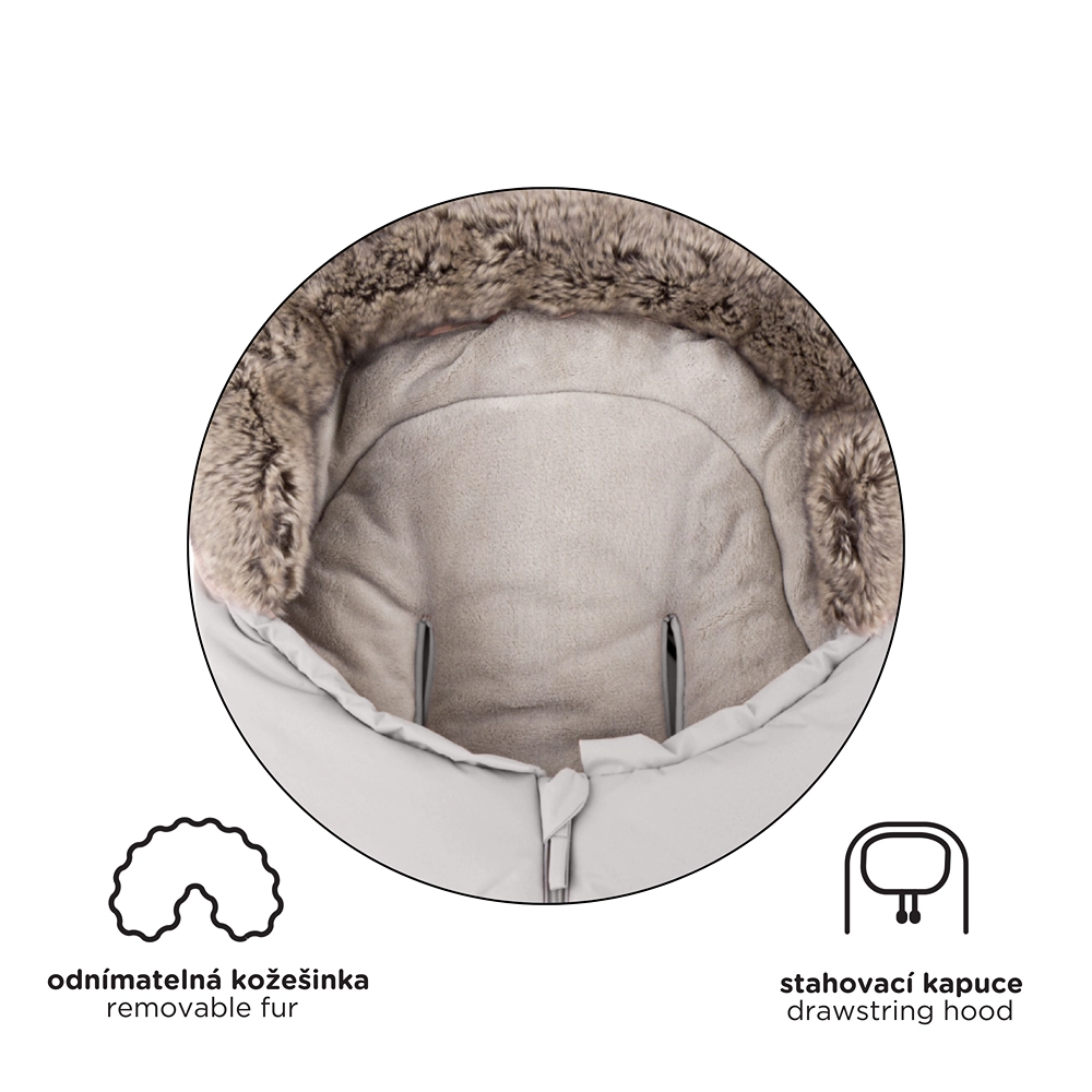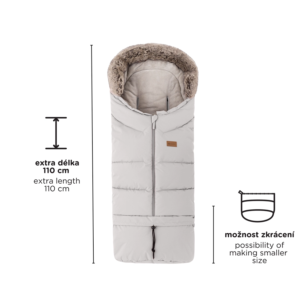 Vreću lako skratite odvajanjem donjeg dijela za duboka kolica ili autosjedalicu, a u punoj dužini od 110 cm idealna je za sportska kolica. Krzneni ovratnik služi kao zaštita od vjetra.