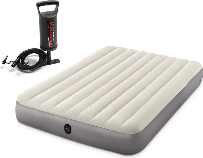 Dvosobni napuhujući madrac INtex dimenzija 203 × 152 × 25 cm nudi udoban san kod kuće i na putu. Zahvaljujući tehnologijama FIBER-TECH i DURA-BEAM madrac je stabilan, izdržljiv i zadržava oblik čak i pri većem opterećenju. U pakiranju se nalazi ručna klipna pumpa za brzo napuhavanje te zakrpa za moguće popravke. Flockana površina osigurava ugodan dodir i protukliznost.
