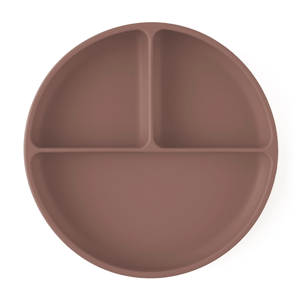 Praktičan okrugli tanjur od silikona za prehranu s vakuumskom podlogom i tri pregrade čuva hranu odvojeno i sigurno na mjestu. Bez BPA, prikladan za mikrovalnu, perilicu posuđa i hladnjak, idealan za samostalno hranjenje djece od 6 mjeseci.