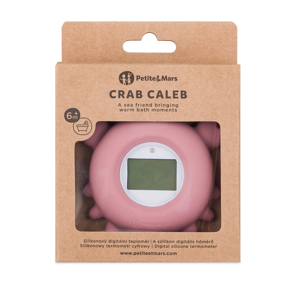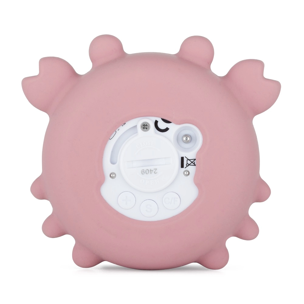 Digitalni termometar za vodu PETITE&MARS Crab Caleb u nježnoj nijansi Dusty Rose pretvara svako kupanje u siguran i razigran ritual. Zahvaljujući preciznom mjerenju u °C i °F te jasnom prikazu na LCD zaslonu lako ćete podesiti idealnu temperaturu za bebu. Mekano silikonsko kućište nježno je prema dječjoj koži, a termometar prirodno pluta na površini, pa je uvijek pri ruci.