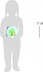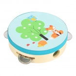 Tamburina je ukrašena sličicama životinjica poput lisice, ježa i sove, što je čini osobito privlačnom za djecu.