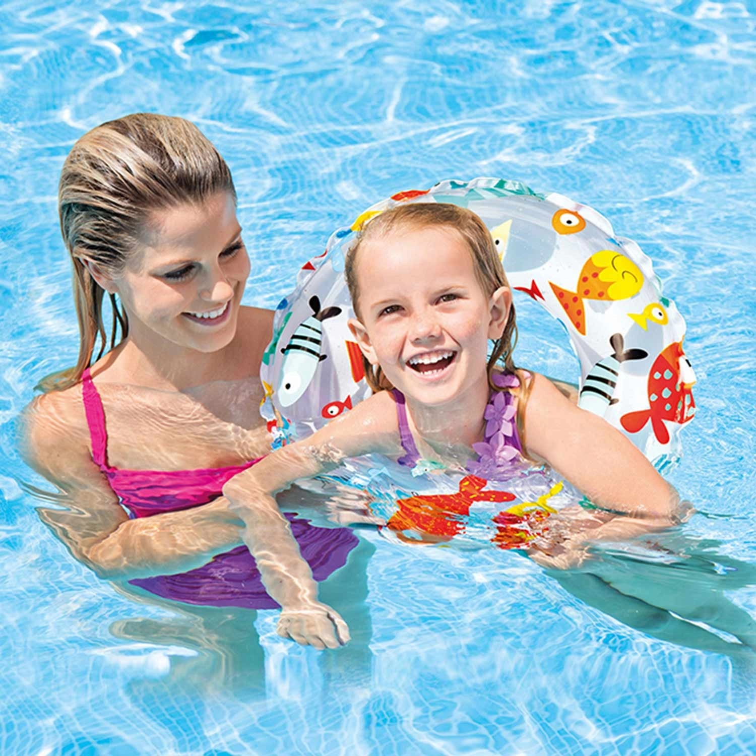 Nafukavajući kolut za vodu INTEX s veselim ljetnim otiscima odličan je izbor za prve vodene igre. Zahvaljujući kompaktnim dimenzijama i maloj težini lako stane u ruksak, brzo se napuše i spreman je za uporabu u trenu. Izdržljiv PVC materijal podnosi uobičajene dječje nestašluke uz vodu.