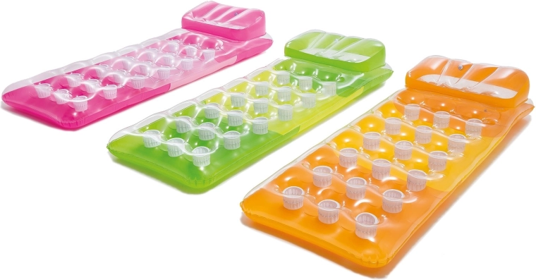Madrac Intex osmišljen je za opuštanje uz bazen, na jezeru ili na moru. Ergonomski oblik s udobnim jastukom izvrsno podupire tijelo i pruža ugodan odmor na površini vode. Zahvaljujući čvrstoj PVC konstrukciji zadržava oblik i elastičnost dugo vremena.