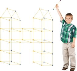 Otkrijte čar kreativnog građenja s našim nevjerojatnim setom koji omogućava djeci da grade široku paletu struktura, kao što su šatori, baze ili čak pseće kućice! Set sadrži 75 dijelova, uključujući 51 žuti štap i 24 raznobojne spojne kuglice koje pružaju beskonačne mogućnosti građenja.