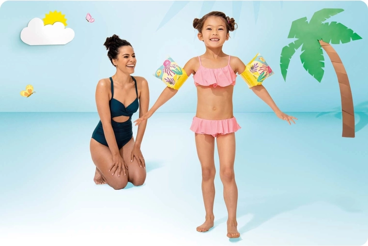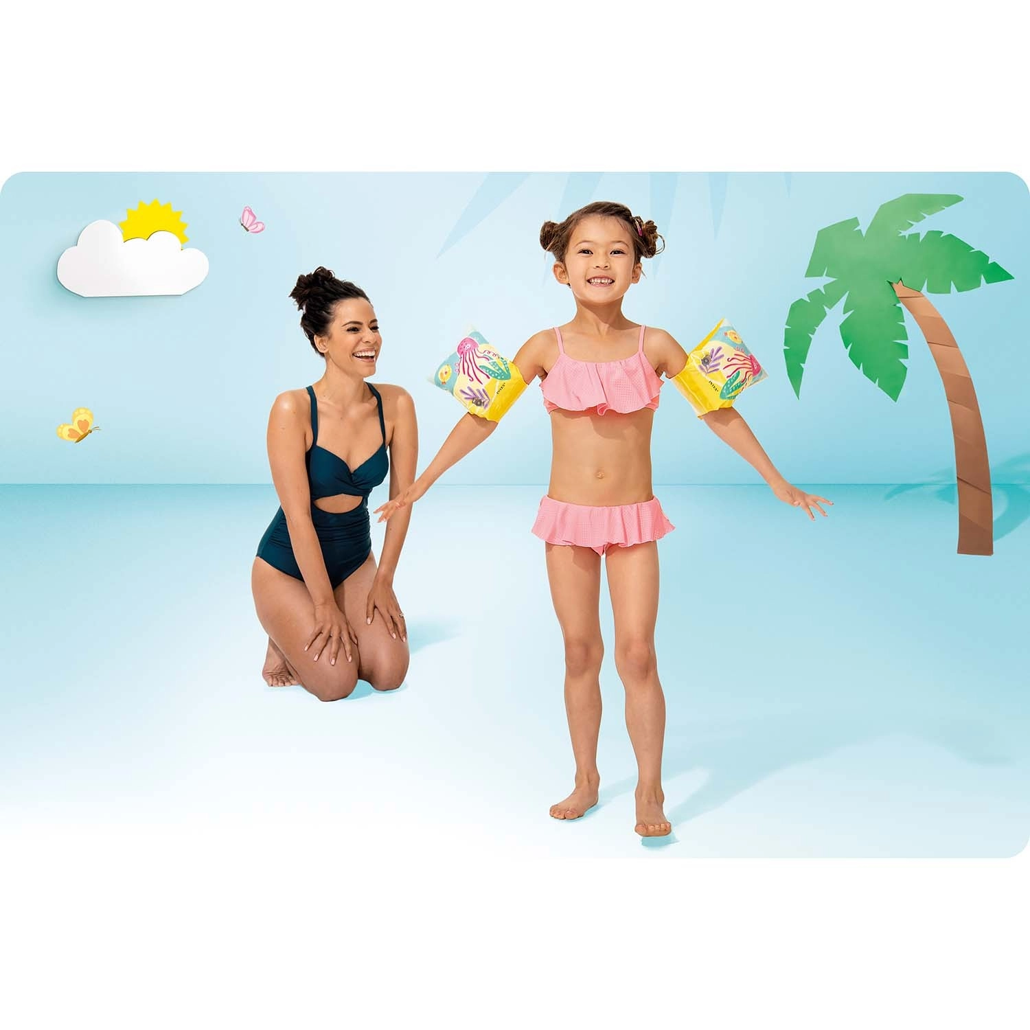 Napuhujuće rukavice INTEX idealno su pomagalo za prve korake u vodi. Dvije odvojene zračne komore osiguravaju veću sigurnost i stabilnost, dok je mekan, ali izdržljiv PVC ugodan na dodir i otporan na svakodnevnu upotrebu na bazenu i moru.