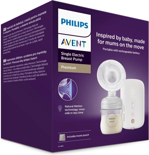 Philips Avent električna izdajalica majčinog mlijeka Premium dizajnirana je prema prirodnom ritmu dojenja kako bi podržala učinkovito i nježno izdajanje. Zahvaljujući tehnologiji Natural Motion nježno se prilagođava veličini i obliku bradavice te pomaže brzo pokrenuti protok mlijeka. Tih motor, pregledan zaslon i mogućnost pauze čine je idealnim izborom za dnevnu i noćnu upotrebu.