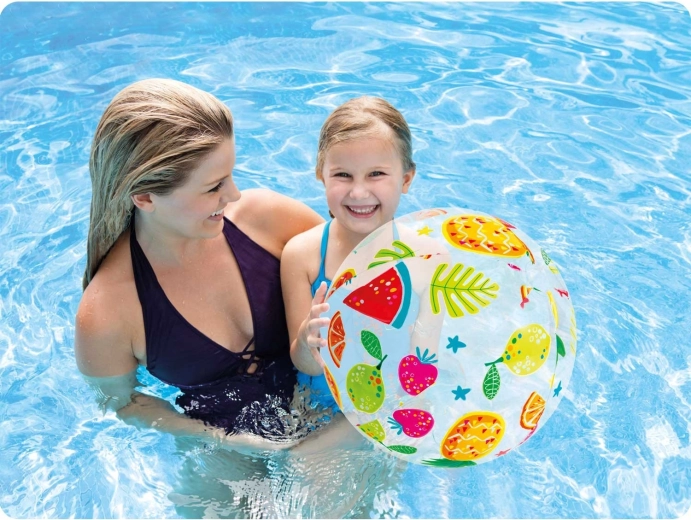 Šarena nafukavajuća plažna lopta s voćnim motivom brenda INTEX idealna je za zabavu uz vodu i u vrtu. Zahvaljujući promjeru od 51 cm, izdržljivom materijalu PVC i maloj težini, lako se prenosi i pruža puno ljetne zabave djeci i odraslima. U pakiranju se nalazi i zakrpa za brzu popravku.