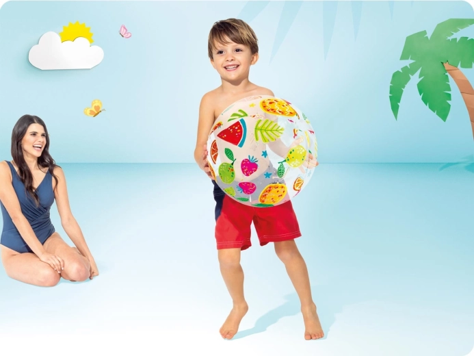 Uživajte u ljetu do kraja s plažnom loptom Intex s veselim voćnim tiskom. Odlično vidljiva na pijesku i u vodi, lagana i kompaktna – ispuštena zauzima minimum mjesta u torbi. Izdržljiv vinilni materijal osigurava dugu trajnost i bezbrižnu igru.
