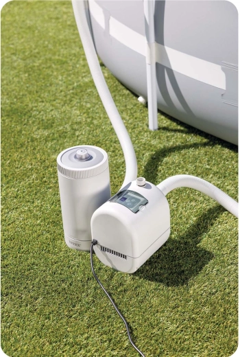 Kompaktna jedinica s crijevima i priključcima brzo se povezuje na bazen i osigurava pouzdanu cirkulaciju.