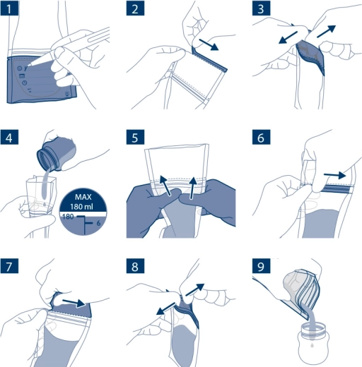 Za maksimalnu praktičnost vrećice samostalno stoje, a pri skladištenju se mogu spremati položeno, čime štede prostor u hladnjaku i zamrzivaču. Materijal bez BPA zadovoljava stroge higijenske zahtjeve. Idealno rješenje za mame koje žele sigurno izdajati, puniti, skladištiti i posluživati majčino mlijeko.