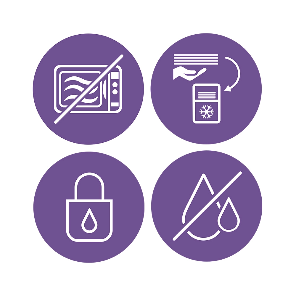 Vrećice za majčino mlijeko Philips Avent dizajnirane su za higijensko, sigurno i praktično čuvanje vašeg dragocjenog mlijeka. Predsterilizacija i zaštitni pečat osiguravaju da je vrećica netaknuta prije prve uporabe. Dvostruki zatvarač, pojačani bočni šavovi i dvoslojni materijal štite od curenja čak i u zamrzivaču, dok široki i robusni otvor olakšava punjenje i izlijevanje.