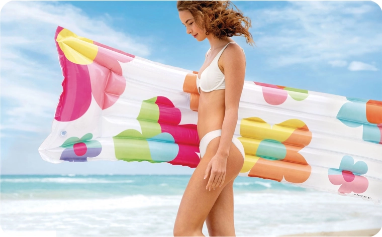 Nafukovací madrac INTEX s veselim cvjetnim uzorkom savršen je izbor za opuštanje na vodi. Zahvaljujući integriranom jastuku pruža ugodnu potporu glavi, dok višekomorna I-beam konstrukcija osigurava stabilnost i udobnost pri ležanju.