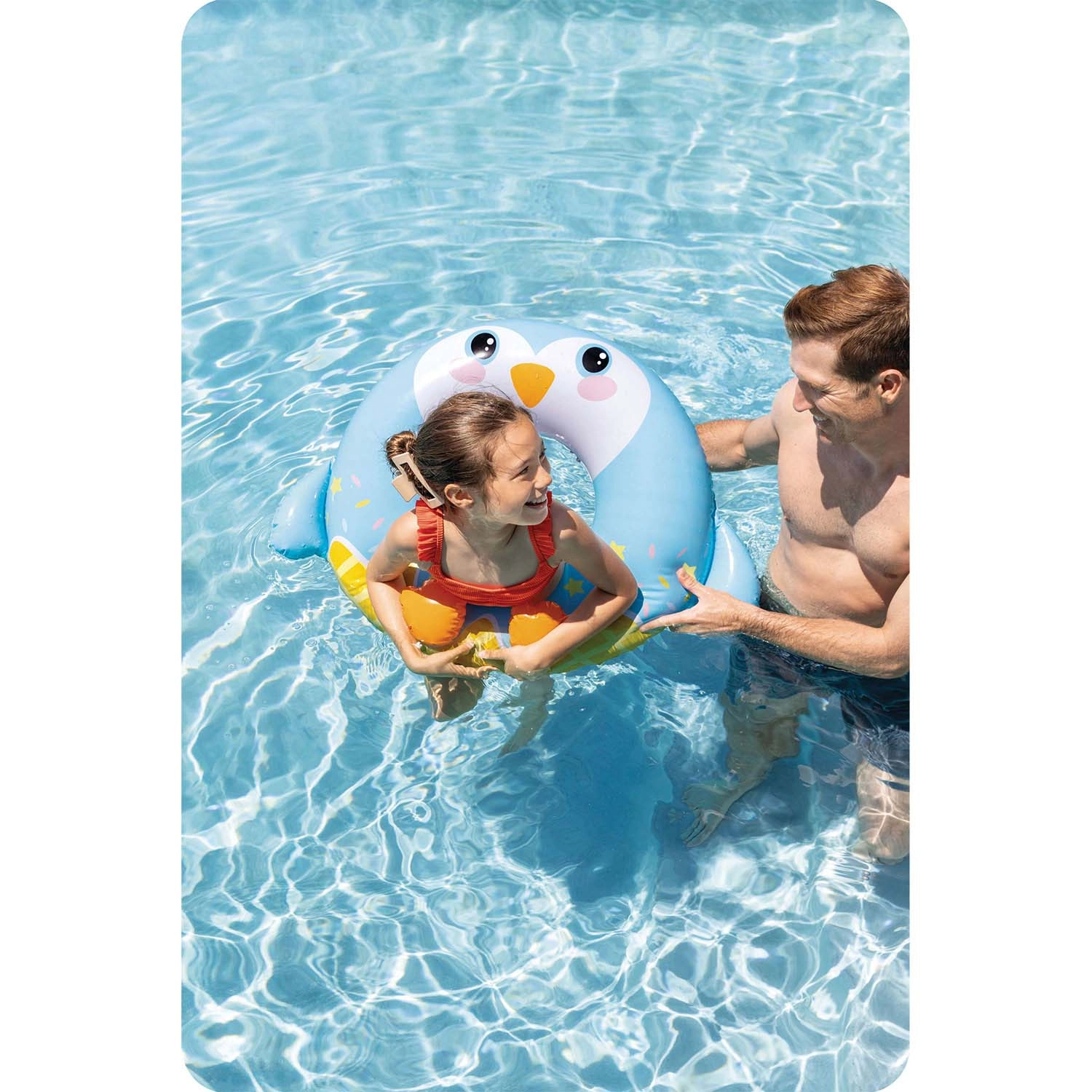 Napuhujući kolut Intex s motivom pingvina idealan je za bazen i plažu. Zahvaljujući čvrstoj foliji od PVC-a (0,2 mm) otporan je na manja ogrebotina i spreman za svakodnevnu ljetnu zabavu. Ergonomski oblik s velikim središnjim otvorom olakšava sjedanje i držanje u vodi.