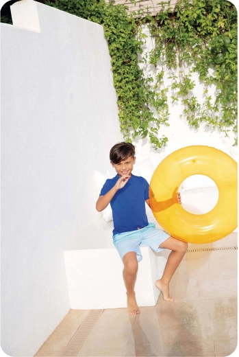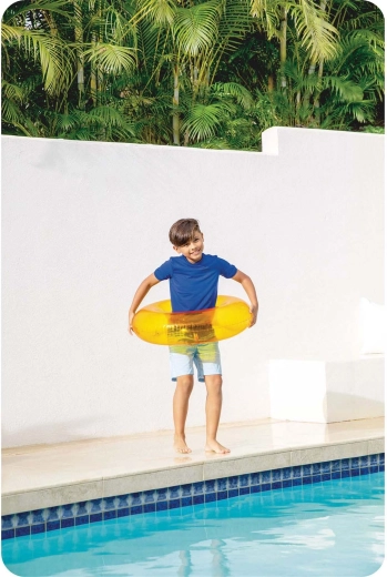Jarko narančasta boja olakšava nadzor nad djecom i povećava sigurnost pri igri u bazenu i na otvorenim vodama.