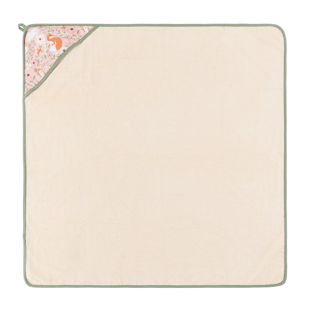 Zahvaljujući kvadratnom obliku i dimenziji 100 × 100 cm lako se prilagođava novorođenčadi, dojenčadi i mališanima. Kapuljača drži glavicu toplom, a alka za vješanje omogućuje brzo vješanje i sušenje. Elegantno ekološko pakiranje od kraft kartona dodatno čini ručnik prekrasnim poklonom za nove roditelje.
