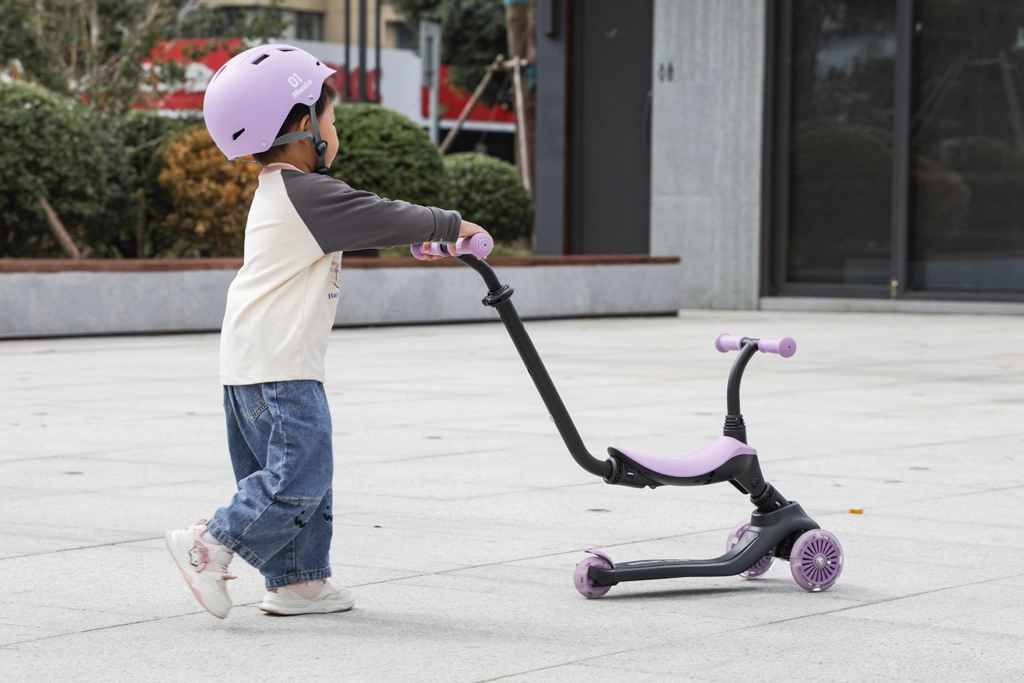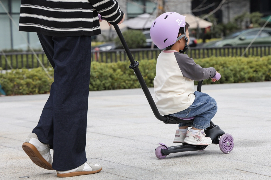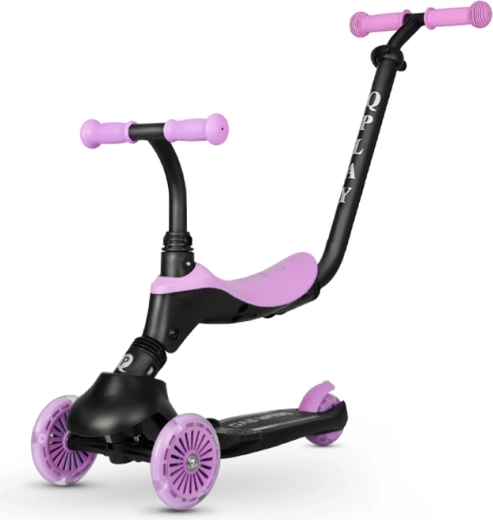 Odvojivo sjedalo i roditeljska ručka omogućuju brzu preobrazbu iz vožnje sjedeći u samostalni romobil koji potiče ravnotežu i koordinaciju.