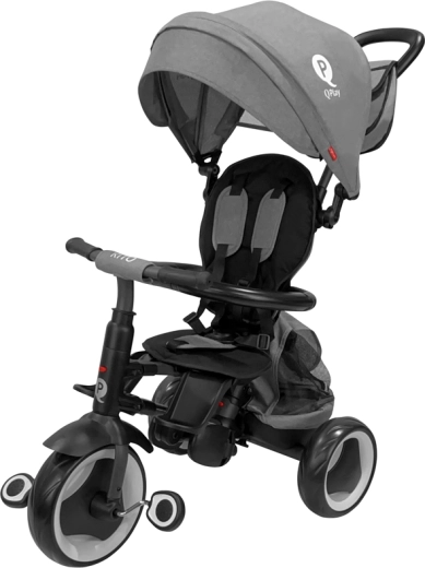 Qplay Rito EVA Plus je promišljena trokolica koja se lako prilagođava dobi i vještinama djeteta. U ranoj fazi je zahvaljujući roditeljskom upravljanju vodite vi, a kasnije mali vozač može preuzeti kontrolu zahvaljujući zaključavanju upravljanja i funkciji slobodnog hoda. Prozračno podloženo sjedalo, podesiv naslon leđa i sklopivi te dodatni oslonac za noge osiguravaju udobnost i na dužim vožnjama.