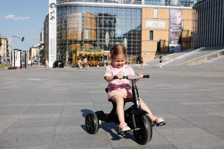 Tricikl Qplay Rito Star dizajniran je za udobnost djeteta i roditelja. Lagani i čvrsti aluminijski okvir, prozračno podstavljenje i podesivi naslon s 2 položaja osiguravaju ugodnu vožnju. Roditelji će cijeniti glatko upravljanje, kočnice na stražnjim kotačima i mogućnost brzog sklapanja u kompaktan oblik za lako prenošenje i pohranu.