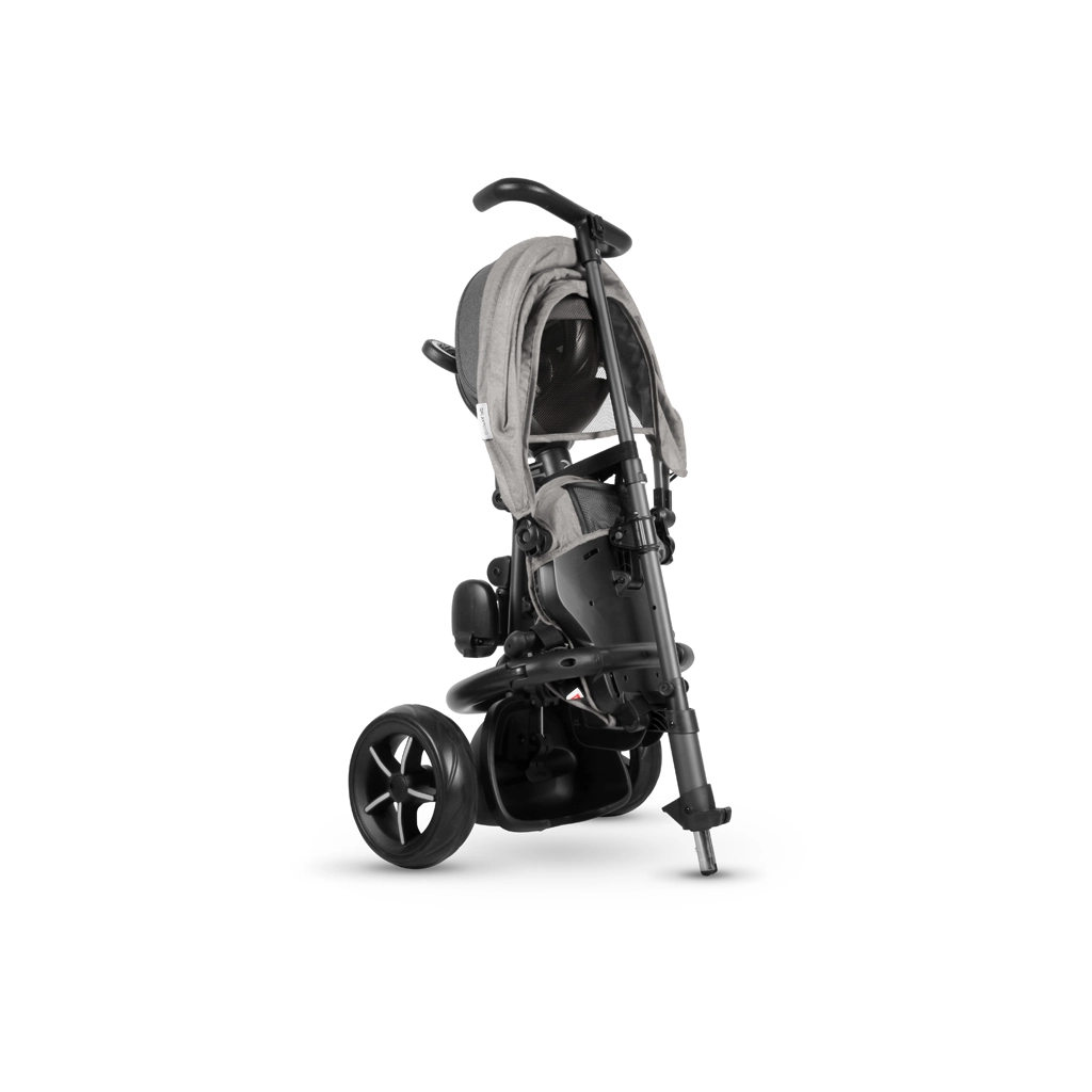 Sklapa se u nekoliko klikova bez alata. Nakon sklapanja tricikl se može jednostavno gurati kao putna torba – idealno za auto i javni prijevoz.