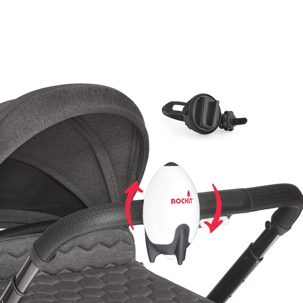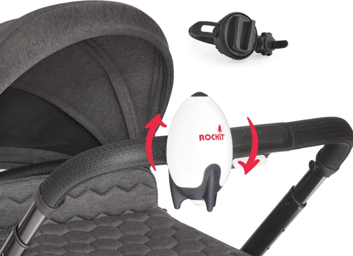 Umirite bebu bez napora – prijenosna ljuljačka za kolica ROCKIT nježno ljulja kolica umjesto vas. Nudi tihi motor s podešavanjem intenziteta, automatski 60‑minutni ciklus, USB punjenje i univerzalni rotirajući držač za većinu kolica. Zahvaljujući vodootpornosti IPX1 idealna je za kuću i vani.
