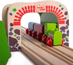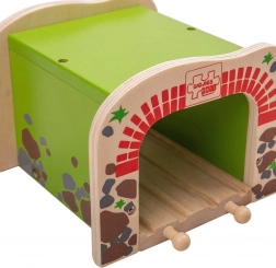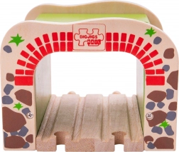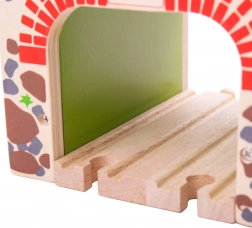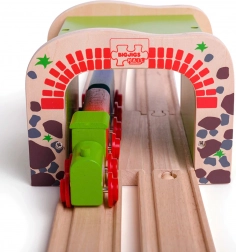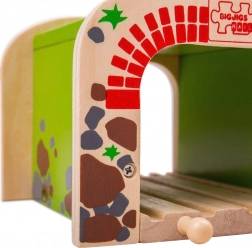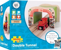 Drveni dvostruki tunel BIGJIGS RAIL donosi u svijet drvenih željezničkih pruga više akcije i glatkiji promet. Zahvaljujući dvokolosječnom prolazu istodobno mogu prolaziti dva vlakića, što potiče zajedničku igru i razvoj koordinacije. Čvrsta konstrukcija i atraktivan motiv cigle i kamena daju pruzi realističan izgled.