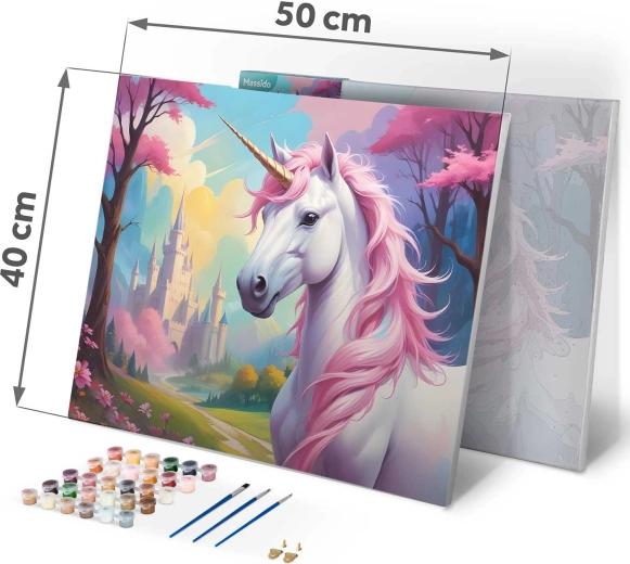 Otkrijte čaroliju stvaranja s kompletom slikanje po brojevima u veličini 40 × 50 cm. Motiv jednoroga na kvalitetnom platnu na okviru spreman je za slikanje. U setu ćete pronaći 30 pokrivnih akrilnih boja, 3 kista gratis različitih veličina i kuke za vješanje. Obojeno podslikavanje s nježnim uzorkom olakšava slikanje i početnicima te jamči lijep, intenzivan rezultat.