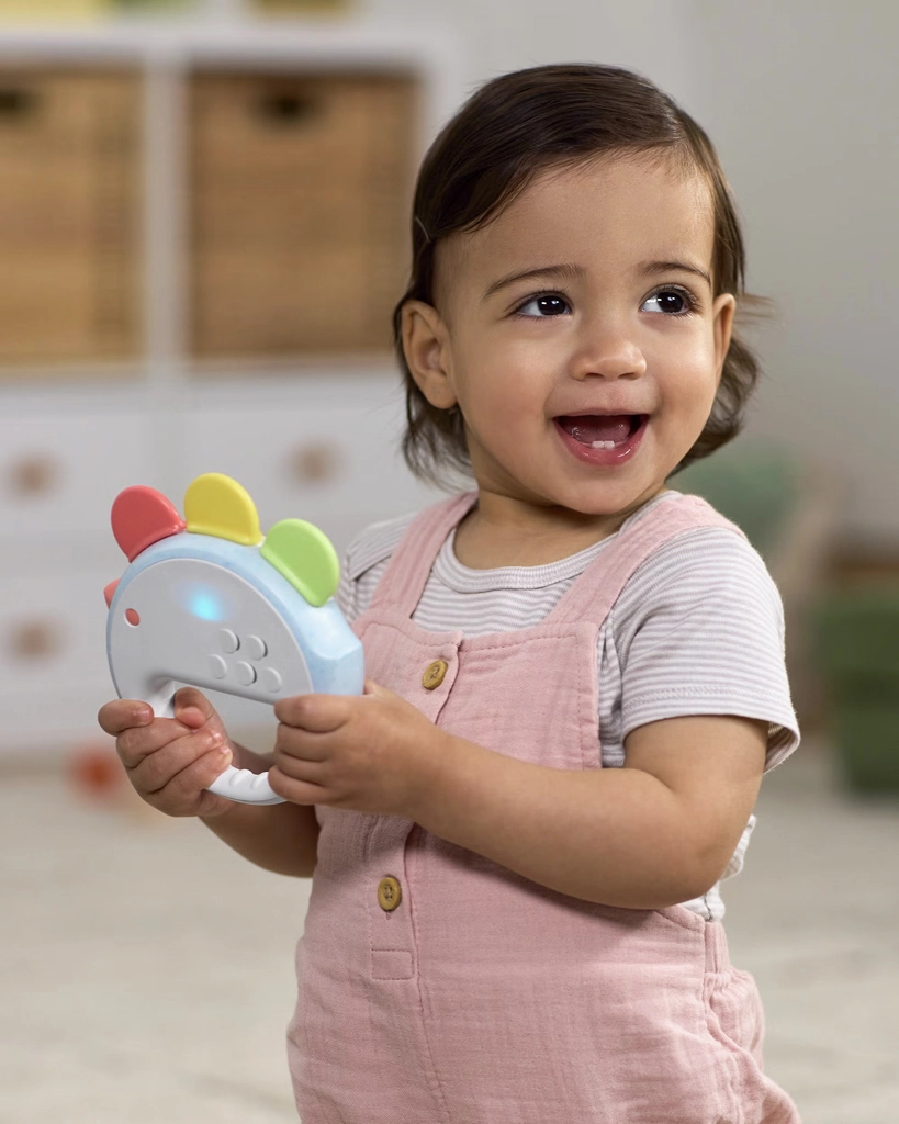 Zahvaljujući prozirnom, lako prihvatljivom prstenu, igračka je savršena za male ručice. Pritiskom na „latice” pokreću se melodije, tonovi ili zvukovi pilića, a protresanje dodaje ritmičke efekte. Izvrstan izbor za zajedničku igru i samostalno otkrivanje glazbe.