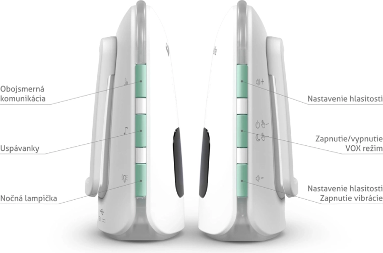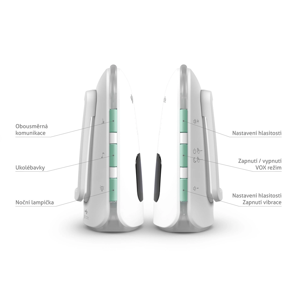 Roditeljska jedinica s LCD zaslonom prikazuje temperaturu, stanje baterije i jačinu signala. Tu su i nadzor temperature s upozorenjem na nisku ili visoku temperaturu, tihi način s vibracijama, praktična noćna lampica i zvučni lokator roditeljske jedinice. Obje jedinice imaju integrirane baterije s dugom izdržljivošću i praktično punjenje putem USB‑C, po potrebi i iz powerbanke.