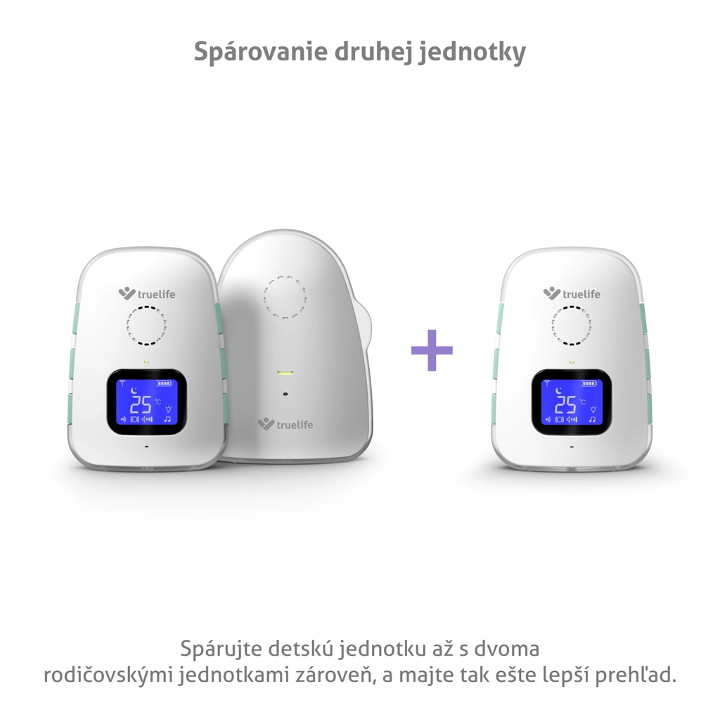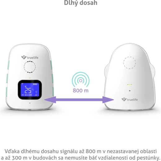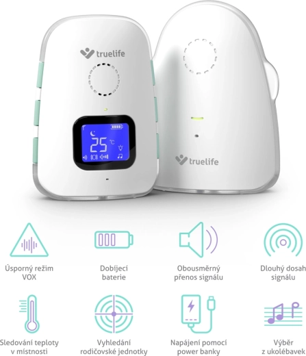 TrueLife NannyTone VM3 je pouzdan digitalni audio bebi monitor za nesmetan pregled zbivanja u dječjoj sobi. Stabilan i siguran prijenos zvuka s dometom do 800 m na otvorenom prostoru i do 300 m u zgradi nadopunjuje osjetljivi VOX način, koji aktivira monitor samo pri detekciji zvuka i tako štedi bateriju. Zahvaljujući dvosmjernoj komunikaciji možete smiriti bebu na daljinu i odabrati između 8 uspavanki s podesivom glasnoćom.
